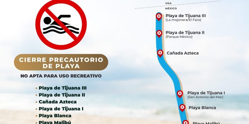 Las playas que permanecerán cerradas y con letreros informativos serán, Tijuana I (San Antonio del Mar), Baja Malibú, Playa Blanca, Tijuana II (Parque México), Tijuana III ( La Mojonera/ El Faro) y Cañada Azteca, por lo que se le solicita a los visitantes tomar sus precauciones.
