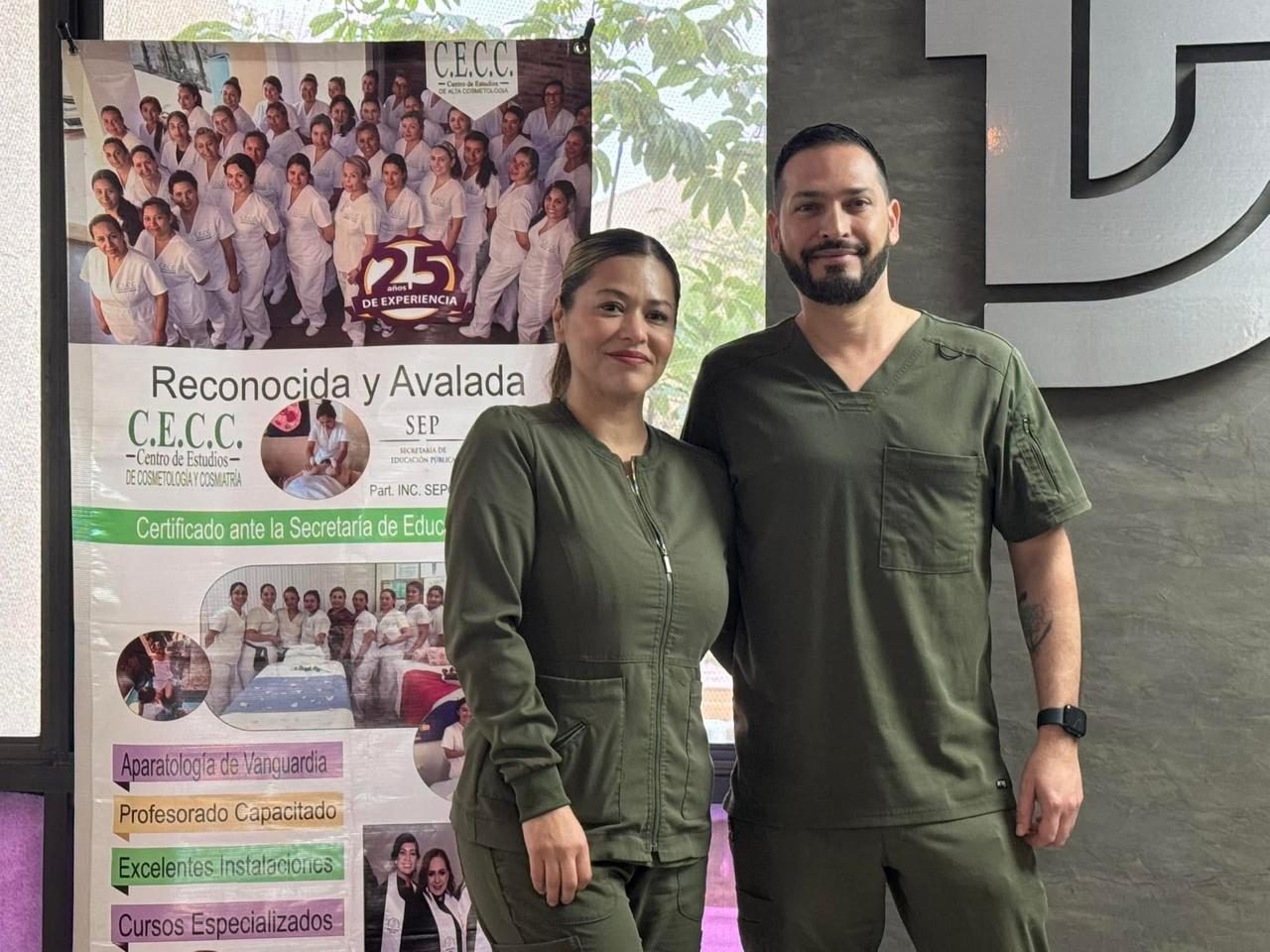 En la conferencia también estuvieron presentes los maestros Leticia Armijo y Omar Jiménez, del Centro de Estudios de Cosmetología y Cosmeatría.