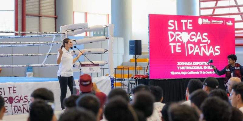 TIJUANA.- En coordinación con el presidente de México, Andrés Manuel López Obrador, y para procurar una vida digna, saludable y libre de violencia en favor de las niñas, niños y jóvenes, la gobernadora de Baja California, Marina del Pilar Avila Olmeda, puso en marcha la campaña nacional «Si te drogas, te dañas» en el Estado, que incluye una serie de estrategias concretas para alejar a la juventud de las sustancias nocivas a través del deporte, la cultura y el arte.