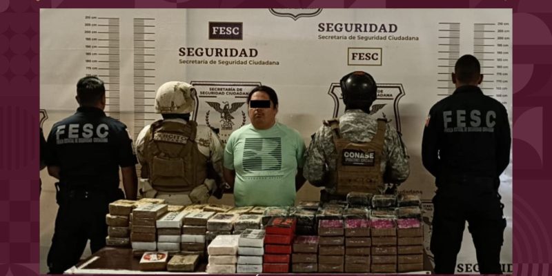 Al hombre en mención se le aseguraron los paquetes que dieron como positivo un peso total aproximado de 120 kilos con 790 gramos de la droga conocida como Fentanilo ilegal, así como 34 kilos con 315 gramos de cocaína, por lo que fue detenido de forma inmediata y posteriormente entregado a la Fiscalía General de la República (FGR), autoridad correspondiente en determinar su situación legal por delitos contra la salud.