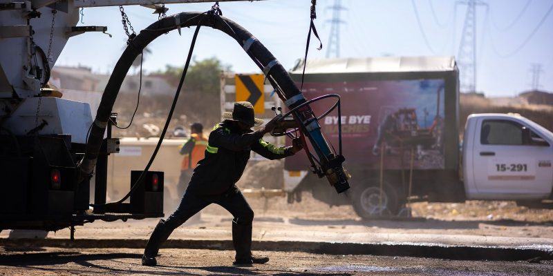 Tijuana, Baja California, 3 de septiembre de 2023.- El Ayuntamiento de Tijuana que encabeza la alcaldesa Montserrat Caballero Ramírez a través de los elementos de la Dirección de Obras e Infraestructura Urbana Municipal (DOIUM), aplicará el «Bye bye baches» con el equipo JetPatcher en la delegación Otay Centenario, sobre el puente vehicular bulevar Garita de Otay y bulevar Bellas Artes, en respuesta a peticiones ciudadanas.