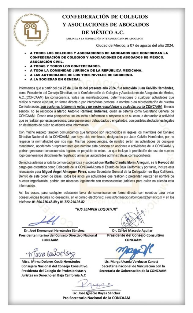 Baja California Cambios y destituciones CONCAAM-Nacional y en Baja California !!! agosto 14, 2024174 views0 Share By Piolín News Share Comparte esto: Haz clic para compartir en Facebook (Se abre en una ventana nueva) Facebook Haz clic para compartir en X (Se abre en una ventana nueva) X Compartir