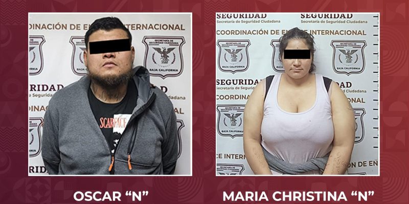 De igual manera, en la ciudad de Mexicali, fue detenida María Christina “N”, quien fue encontrada sobre el Callejón Sonora, entre la calle Heroico Colegio Militar y la calle Cuyutlán, en la colonia Esperanza; la ficha brindada por el Servicio de Alguaciles de Estados Unidos, indica que a esta persona se le giró una orden de arresto el día 16 de enero del presente año, por su presunta responsabilidad de la comisión del delito de tráfico de drogas.