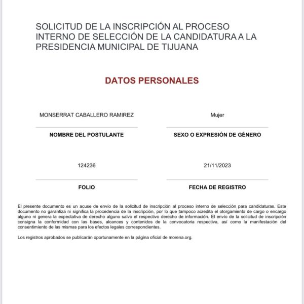Política ALCALDESA MONTSERRAT CABALLERO CUMPLE CON REGISTRO PARA CONTENDER POR LA ALCALDÍA DE TIJUANA