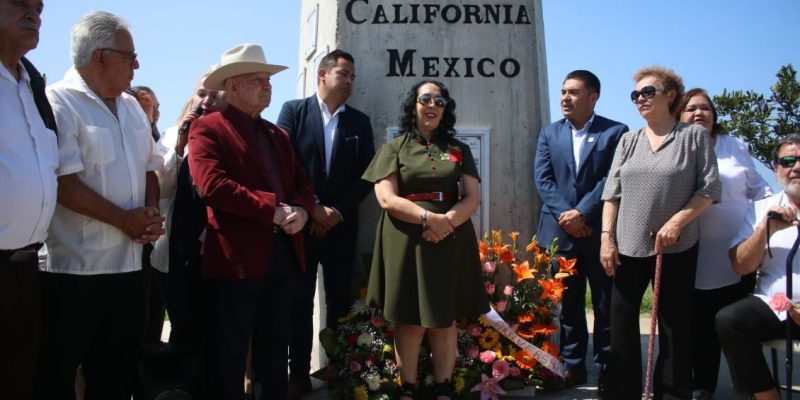 Playas de Rosarito, B.C. 29 de junio de 2023. La presidente municipal, Araceli Brown Figueredo acompañada de integrantes del Comité Pro Municipio, encabezó la celebración por el 28 Aniversario de la Municipalización de Playas de Rosarito, en el obelisco creado para conmemorar esta fecha donde las autoridades depositaron como ofrenda, un ramo de flores.