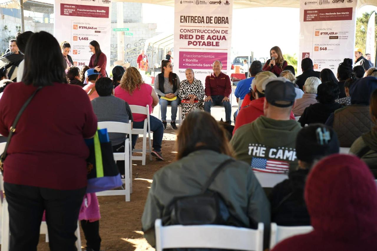 TIJUANA, B.C. – La Comisión Estatal de Servicios Públicos de Tijuana (CESPT) realizó la entrega formal de la obra de la red de agua potable en los fraccionamientos Hacienda San Martín y Bonilla, beneficiando de manera directa a más de 2 mil habitantes, con una inversión de 17 millones 161 mil 965 pesos.