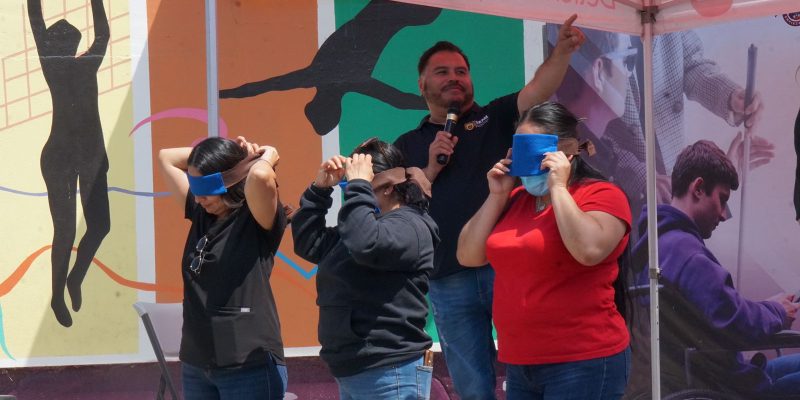 En el cierre de la actividad los presentes tuvieron la oportunidad de participar en dinámicas para aprender el alfabeto y algunas expresiones de socialización en LSM, así como otra en la que un grupo de voluntarios portó un antifaz para ser guiados de tal manera que emularon las circunstancias que afrontan las personas con discapacidad visual.