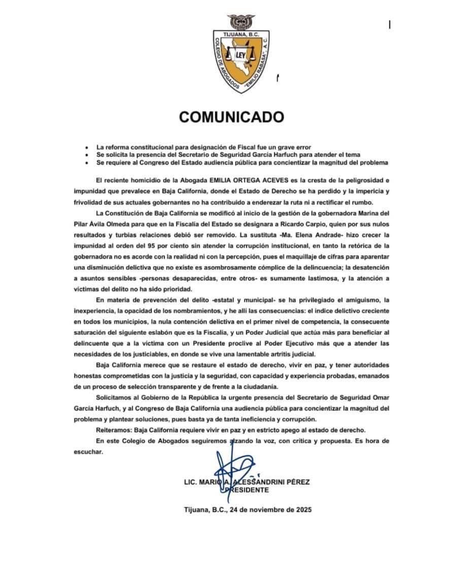 COLEGIO DE ABOGADOS EMILIO RABASA. Comunicado firme, y claro: