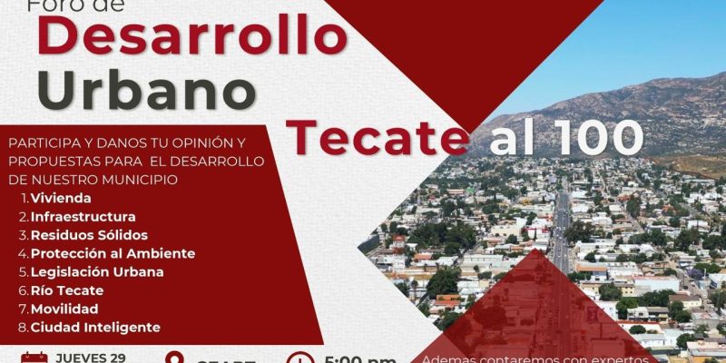 El foro estará integrado por diversas mesas temáticas y entre los aspectos que se abordarán destacan: vivienda, infraestructura, residuos sólidos, protección al ambiente, legislación urbana, Río Tecate, movilidad y ciudad inteligente.