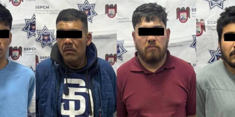 Minutos después, arribaron unidades municipales, quienes de inmediato se coordinaron para realizar la detención de los sospechosos, localizando en el interior del domicilio a varias personas atadas de las manos, las cuales señalaron a otros dos sujetos como los responsables de la retención involuntaria, quienes los golpearon en repetidas ocasiones.