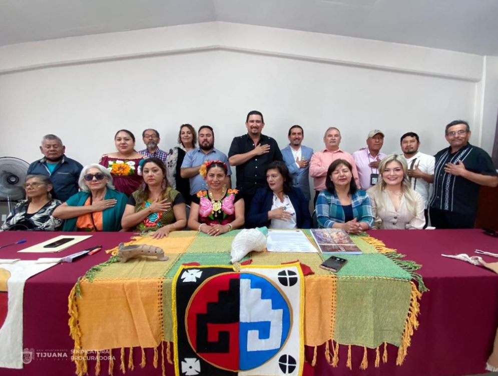 Tijuana, Baja California, a 20 de junio de 2023.- A fin de contribuir en generar mejor calidad de vida para las personas que provienen de pueblos originarios de Baja California y del interior del país, el síndico procurador del XXIV Ayuntamiento de Tijuana, Rafael Leyva Pérez participó como Testigo de Honor en la firma del Pacto de Anáhuac, mecanismo que busca fortalecer la unidad de dichos pueblos.