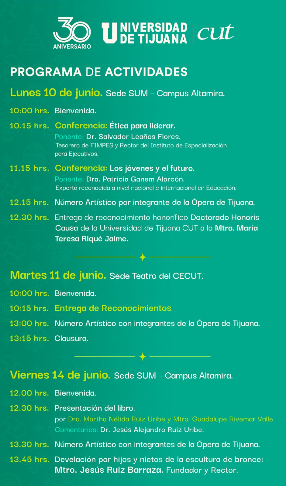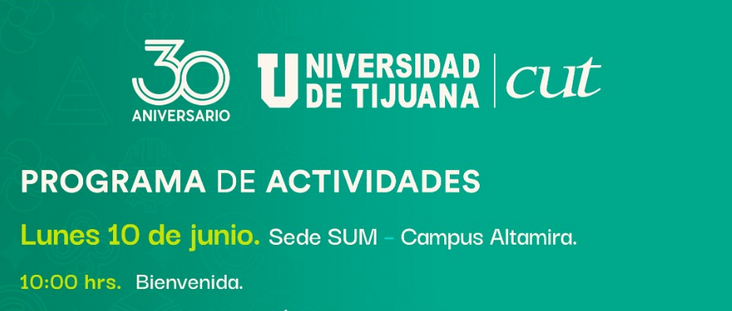 PrincipalesTijuana El CUT Festeja su 30 Aniversario !!! junio 9, 2024109 views0 Share By admin Share Comparte esto: Haz clic para compartir en Facebook (Se abre en una ventana nueva) Facebook Haz clic para compartir en X (Se abre en una ventana nueva) X Compartir