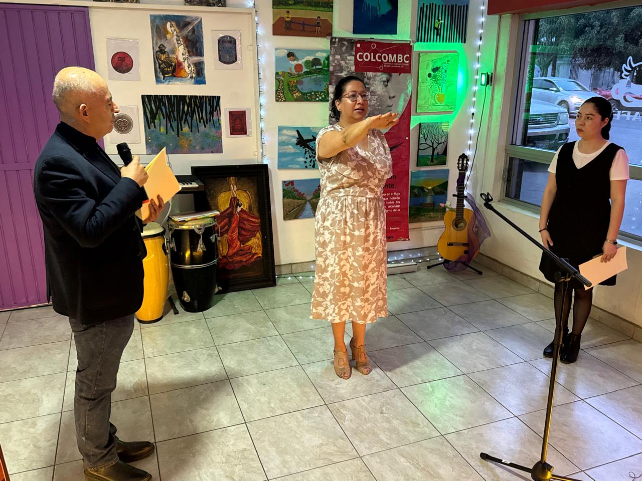 Previo al inicio del programa artístico, se llevó a cabo la toma de protesta de Alma Delia Padilla González como nueva integrante del Colegio. Con su incorporación, el Colcombc marca el inicio de su presencia formal en Mexicali. Durante su intervención, el presidente del Colcombc, maestro Isaías Plascencia Rosales, ofreció una emotiva recepción a los familiares de Ana Velia presentes en el evento, agradeciéndoles su apoyo y acompañamiento en esta ocasión tan especial.