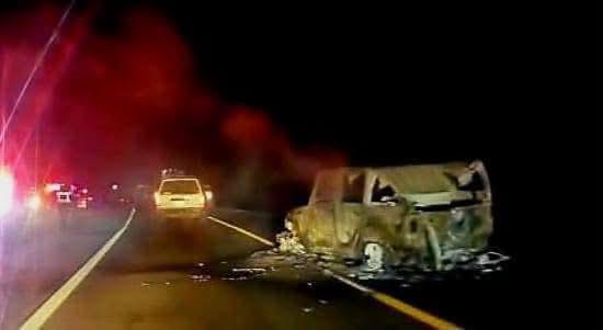 También fue encontrado un auto, jeep, calcinado totalmente. En su interior estaban tres personas calcinadas; Dos hombres y una mujer. En el auto fue encontrada un arma de fuego.