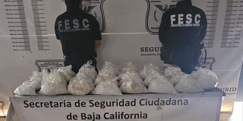 TIJUANA.- El hallazgo de 35 kilogramos de la sustancia sintética metanfetamina fue realizado por agentes de la Fuerza Estatal de Seguridad Ciudadana (FESC) luego de que un ciudadano les solicitara apoyo para verificar un vehículo que había sido abandonado y llevaba varios días estacionado frente a un domicilio de la colonia Aguaje de la Tuna Segunda Sección, en la ciudad de Tijuana.