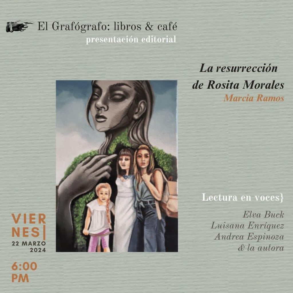 La escritora Marcia Ramos presentará su libro titulado “La resurrección de Rosita Morales”, el cual aborda la temática de violencia de género. El evento tendrá lugar el 22 de marzo a las 18:00 horas en El Grafógrafo: Libros & Café, ubicado en Pasaje Rodríguez, Av. Revolución, Calle 3a. y 4ta., Zona Centro, con entrada libre.