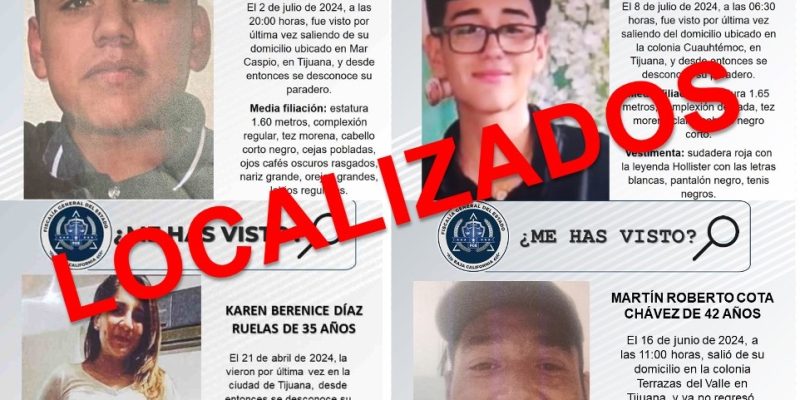 Las personas localizadas son: José Daniel Vázquez Pérez de 14 años, Edgar Cabanillas Villaseñor de 17 años, Karen Berenice Díaz Ruelas de 35 años y Martín Roberto Cota Chávez de 42 años de edad.