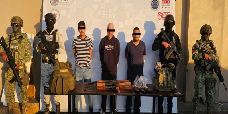 SAN FELIPE. – Luego de haber recibido una denuncia anónima por parte de un ciudadano, agentes de la Fuerza Estatal de Seguridad Ciudadana (FESC) en coordinación con elementos de la Secretaría de la Defensa Nacional (DEFENSA) y Guardia Nacional (GN), aseguraron a tres personas en posesión de armas de fuego, cartuchos útiles y chalecos balísticos, además, se resguardó un domicilio en espera de que se cumpla con una Orden Técnica de Investigación.