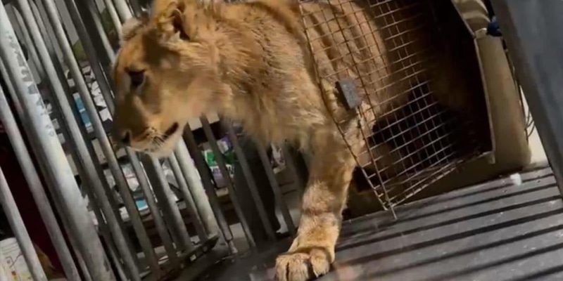 Fue así como se localizó sobre la banqueta dicha jaula transportadora que al ser inspeccionada por los agentes de la Secretaría de Seguridad Ciudadana de Baja California (SSCBC), confirmaron que dentro había un león africano de 5 meses de edad, aproximadamente.