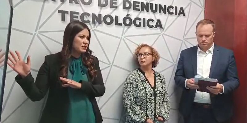 Sonia López Urrea, directora de Atención Ciudadana y Justicia Alternativa Penal (ACJAP), acompañó a los invitados durante el recorrido por las instalaciones, brindando información detallada sobre el funcionamiento y los procedimientos en el Centro de Denuncia Tecnológica.