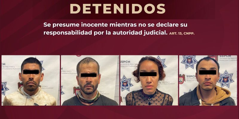 Los detenidos responden a los nombres de Francisco “N” de 34 años, Carlos “N” de 24, así como German “N” de 40 y Paulina “N” de 29, los cuales se tenían identificados como generados de violencia en la zona.