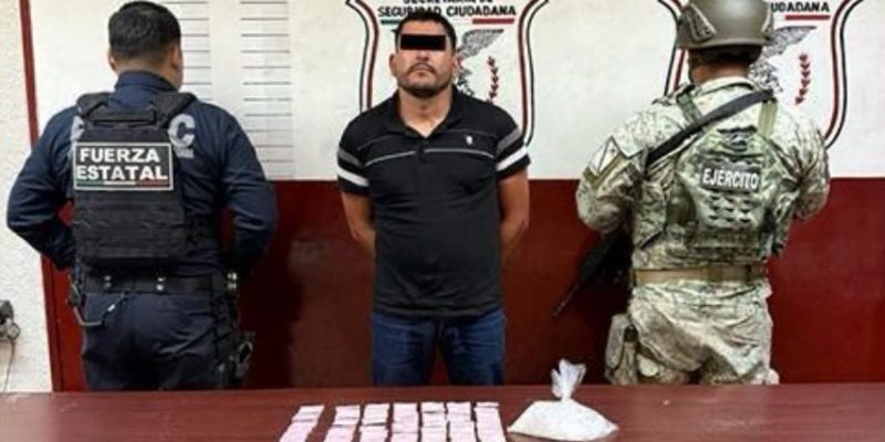Fue sobre la calle Mar de Filipinas casi esquina con avenida Puerto Peñasco, en la colonia Ampliación Segunda Sección del municipio de San Felipe, en donde los agentes intervinieron a quien se identificó como Abraham “N” de 28 años de edad y originario de Mexicali, encontrándole entre sus pertenencias, luego de inspeccionar el vehículo Toyota Camry año 1998 sin placas de circulación, 382 gramos de metanfetamina que están dentro de una bolsa, así como 72 envoltorios que contenían la misma sustancia ilícita con un peso total aproximado de 128 gramos.