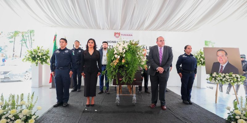 La alcaldesa del XXlV Ayuntamiento de Tijuana, Montserrat Caballero Ramírez, montó guardia de honor al ex Presidente Municipal Luis Arturo González Cruz, durante la ceremonia solemne realizada en la explanada del Monumento a la Madre.