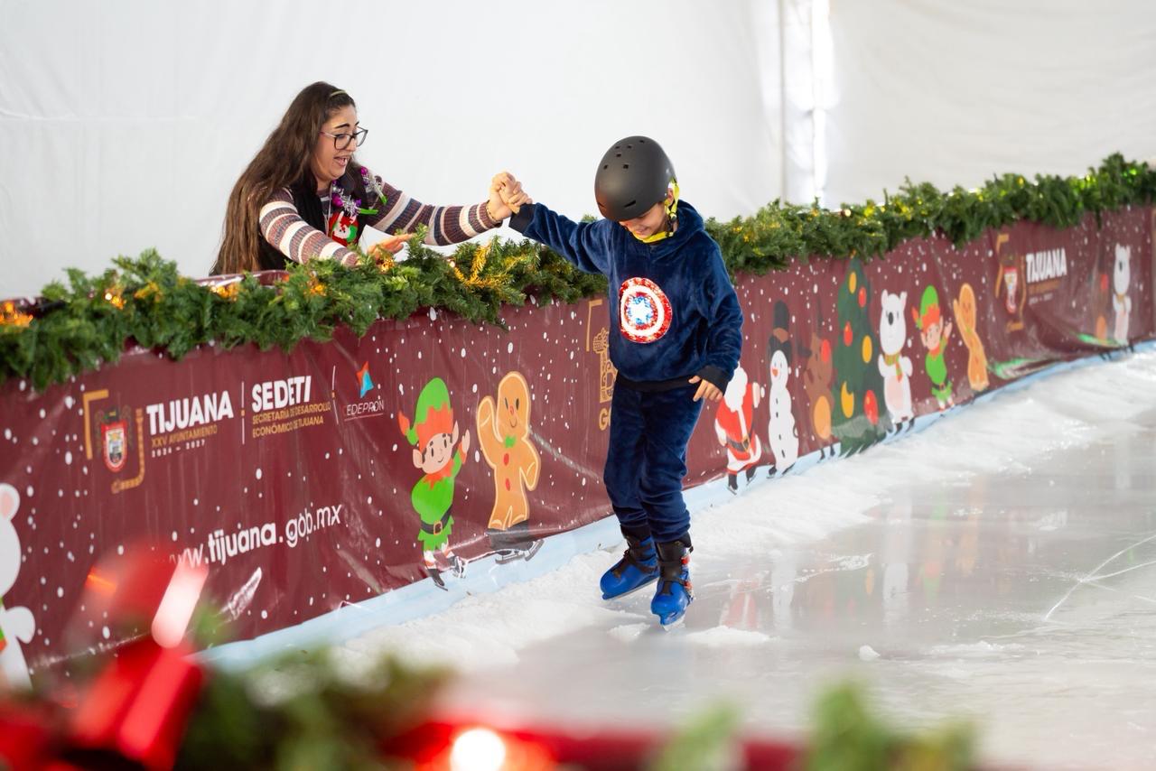 TIJUANA, B.C., a 12 de diciembre de 2025 . – En representación del presidente municipal, Ismael Burgueño Ruiz, la sindica procuradora, Teresita Balderas Beltrán, inauguró la pista de patinaje sobre hielo, instalada en la explanada exterior de Palacio Municipal.