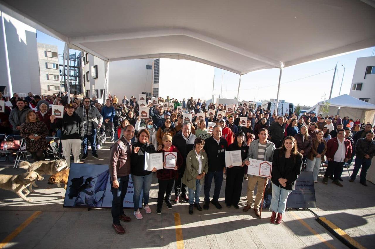 Anunció que, por instrucciones de la Presidenta, se avanza en la entrega gratuita de cancelaciones de hipoteca y, a la fecha, ya se han liberado 1 mil hipotecas en el estado, dando seguridad y certeza a las familias.