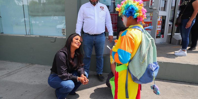 Durante un recorrido iniciado en la zona urbana río Tijuana, la alcaldesa logró entablar comunicación con uno de los menores que disfrazados de payasos piden dinero entre los carros.