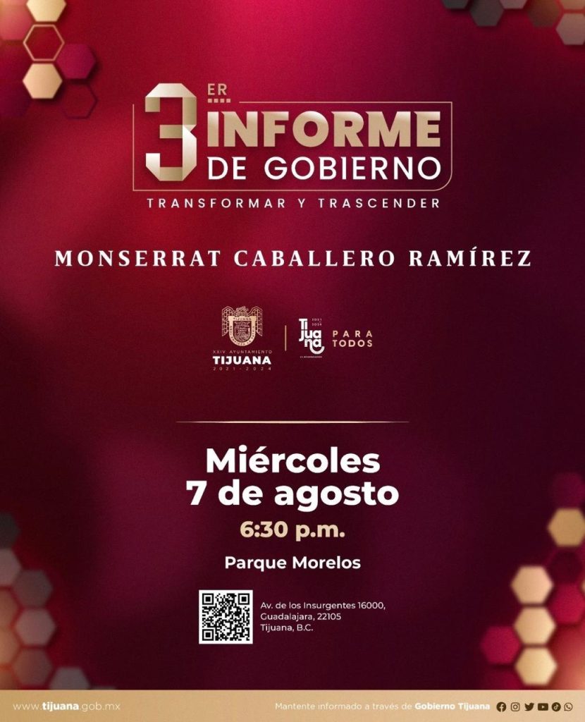 PrincipalesTijuana La alcaldesa de Tijuana, invita a todos los tijuanenses, a su 3 de. Informe de Gobierno . agosto 3, 2024180 views0 Share By Piolín News Share Comparte esto: Share on Facebook (Se abre en una ventana nueva) Facebook Share on X (Se abre en una ventana nueva) X Compartir