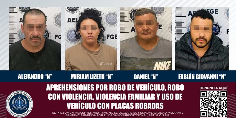 TIJUANA, BAJA CALIFORNIA, A 7 DE OCTUBRE DE 2023.- El desarrollo de diversas acciones de investigación por parte de elementos de la Agencia Estatal de Investigación (AEI), dio como resultado la cumplimentación de cuatro mandamientos judiciales por diversos delitos.