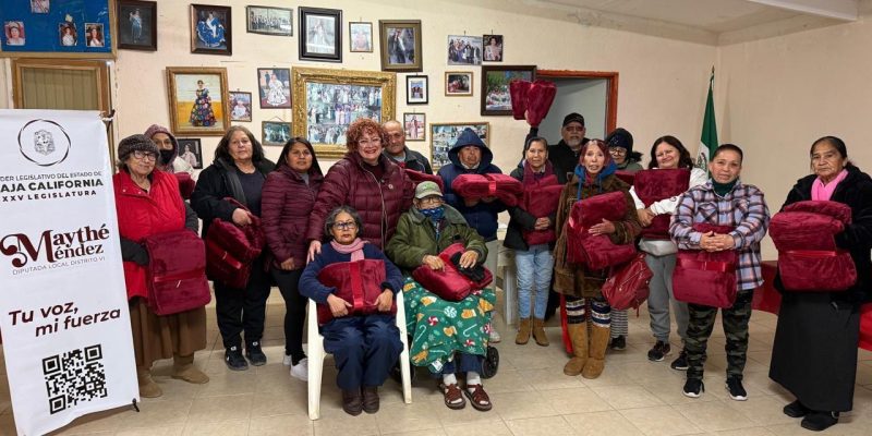 Tecate, B. C. 11 de febrero de 2025.- La diputada Maythé Méndez visitó a las personas adultas mayores del Club de la Alegría “Nuevo Milenio”, ubicado en la colonia Luis Echeverría (El Hongo), donde entregó cobijas como parte de su compromiso de apoyo a los sectores más vulnerables.