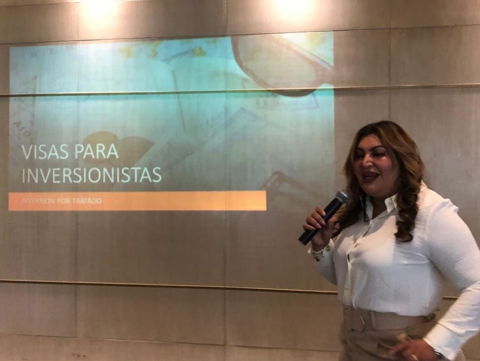 El tema que expuso la invitada se tituló “Visa de inversionista para Estados Unidos, ¿cuál es la correcta para ti?”, donde refirió que existen la visa E1, para comerciantes, donde se suele requerir un capital de entre 50 mil a 80 mil dólares.