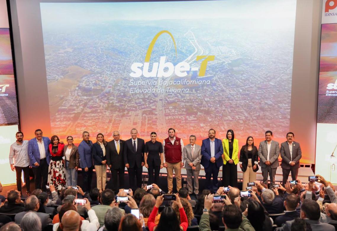 TIJUANA, B.C., a 1 de abril de 2026 . —  El presidente municipal de Tijuana, Ismael Burgueño Ruiz, acompañó a la gobernadora del estado, Marina del Pilar Avila Olmeda, a la presentación del proyecto ‘Sube-T’ Supervía Bajacaliforniana Elevada de Tijuana, iniciativa que busca transformar la movilidad urbana en la ciudad, optimizar los tiempos de traslado y promover un desarrollo urbano más sostenible.