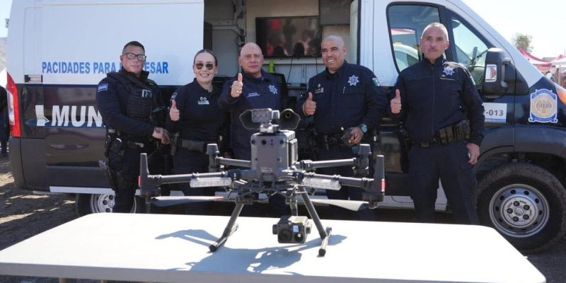Durante la Macro Jornada de Bienestar celebrada hoy en la colonia Altiplano, el Secretario de Seguridad y Protección Ciudadana Municipal, Juan Manuel Sánchez Rosales, encabezó una exhibición sobre la operatividad de los drones de vigilancia con los que cuenta la Policía Municipal de Tijuana.