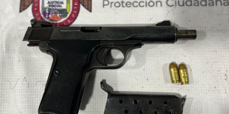 Dicho individuo se identificó como José Ángel “N” de 35 años a quien le fue asegurada un arma tipo pistola calibre .380 abastecida con dos cartuchos útiles.