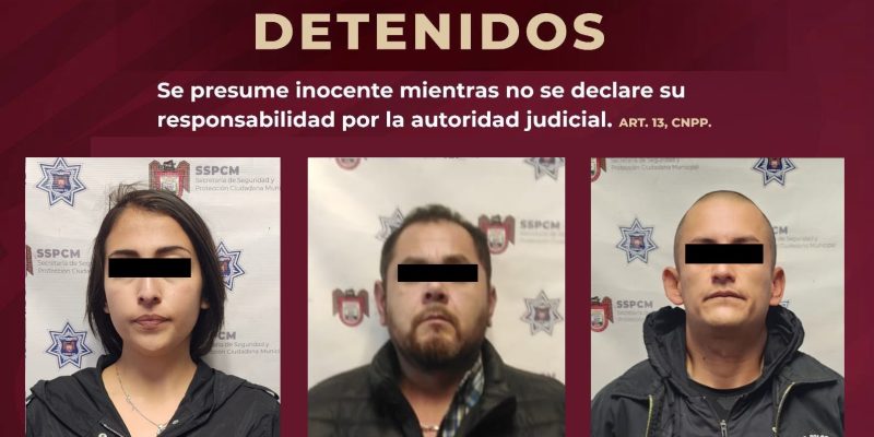 Tijuana, B.C., a 18 de febrero de 2024.- Dos hombres y una mujer se sumaron a la lista de detenidos por la Policía Municipal por el delito de portación de arma, quienes fueron asegurados en distintos hechos tras el reforzamiento de la presencia policial y por un denunciante anónimo.