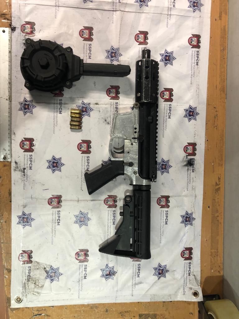 Al aproximarse, uno de los agentes alcanzó a observar un arma de fuego entre la palanca de cambios y el asiento del conductor, por lo que de inmediato solicitó a los tripulantes descender.
