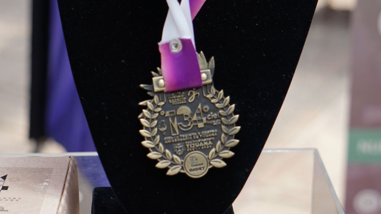 Tijuana, Baja California, 13 de julio de 2023.- A 10 días de que sea celebrada la edición 28 del Medio Maratón Internacional de Tijuana, el Instituto Municipal del Deporte (IMDET) dio a conocer este jueves la medalla y playera conmemorativa del evento pedestre, presentación que estuvo encabezada por la Alcaldesa Montserrat Caballero Ramírez.