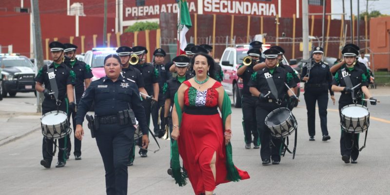 Playas de Rosarito, B.C. 16 de septiembre de 2023.- El Gobierno de la Ciudad realizó el tradicional desfile del 16 de septiembre por el 213 Aniversario del inicio del movimiento de Independencia en México, el cual fue encabezado por la presidente municipal, Araceli Brown Figueredo, quien marchó con la escolta y banda de guerra de la Secretaría de Seguridad Ciudadana de esta localidad.