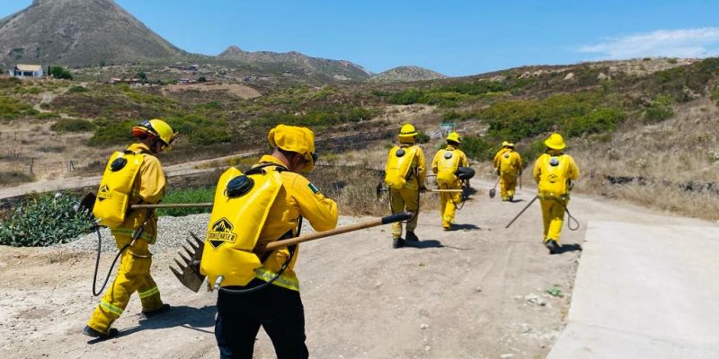 Playas de Rosarito, B.C. 18 de julio de 2024.- La Secretaría de Seguridad Ciudadana (SSC) a través de la Dirección de Protección Civil y Bomberos de Playas de Rosarito, realiza labores de creación de brechas cortafuegos y quemas controladas en las inmediaciones del Rancho La Hermosa, ubicado en el camino vecinal al Cerro Coronel.