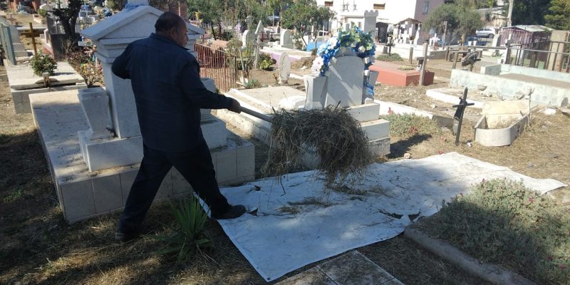 Playas de Rosarito, B.C. 25 de octubre de 2023. Previo al Día de Muertos, cuadrillas de la Secretaría de Desarrollo y Servicios Urbanos (SDSU) continúan con las labores de limpieza en el Panteón Municipal Ejido Mazatlán, ante la espera de más de tres mil visitantes en la próxima semana, tal como lo instruyó la alcaldesa Araceli Brown Figueredo.