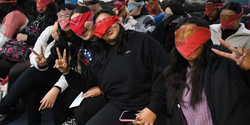 Los alumnos de la carrera de Ciencias de la Educación, antes de ingresar al Salón de Usos Múltiples del Campus Altamira, se les vendaron sus ojos. Fueron ingresando poco a poco al salón y se les ayudó a ocupar un lugar para sentarse. Rosa Elvira les dio la bienvenida y cuestionó cómo se sentían al ingresar de esa manera al aula. “Feo, raro, miedo, inseguridad, desesperación, incertidumbre”, fueron algunas de las respuestas.
