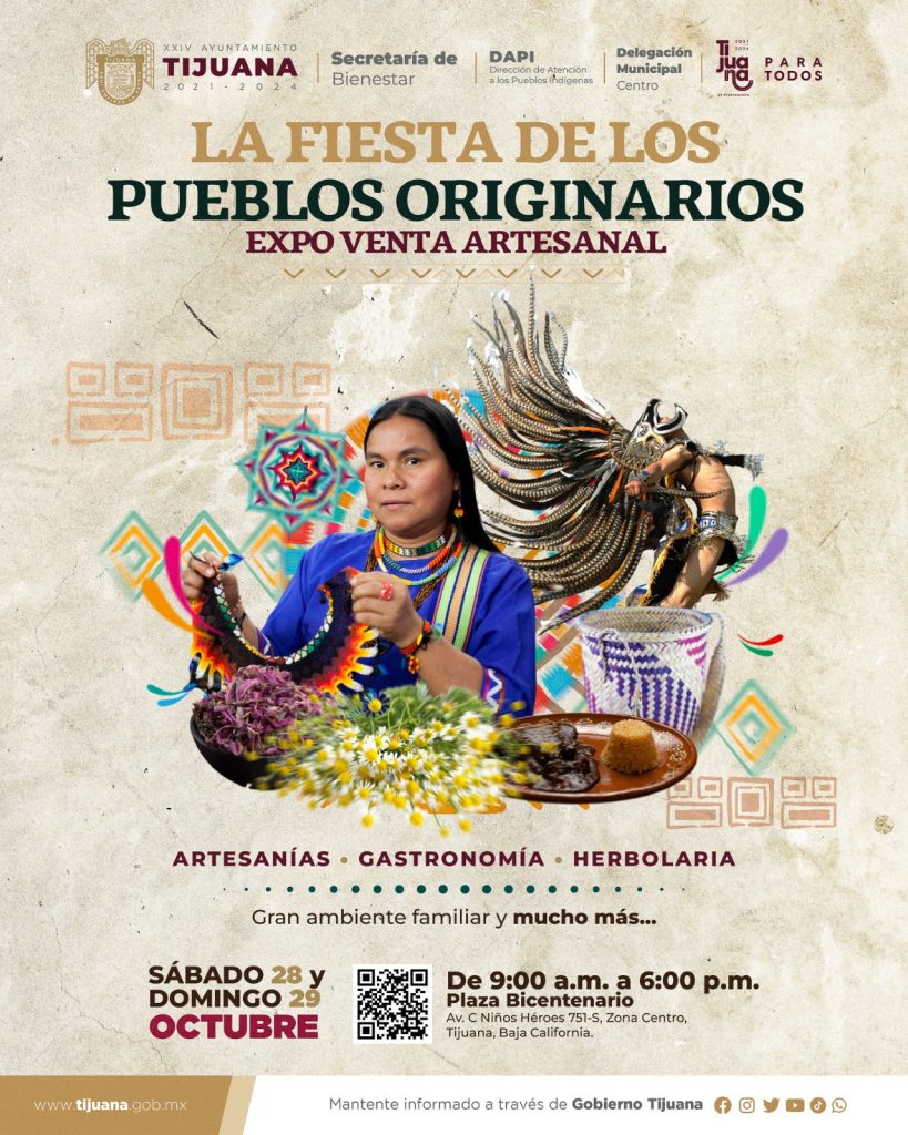 El Ayuntamiento de Tijuana invita a las familias tijuanenses a formar parte de «La Fiesta de los Pueblos Originarios», evento que contribuye a la multiculturalidad que ofrecen los pueblos indígenas asentados en esta frontera, donde además los asistentes podrán disfrutar de números artísticos y culturales.
