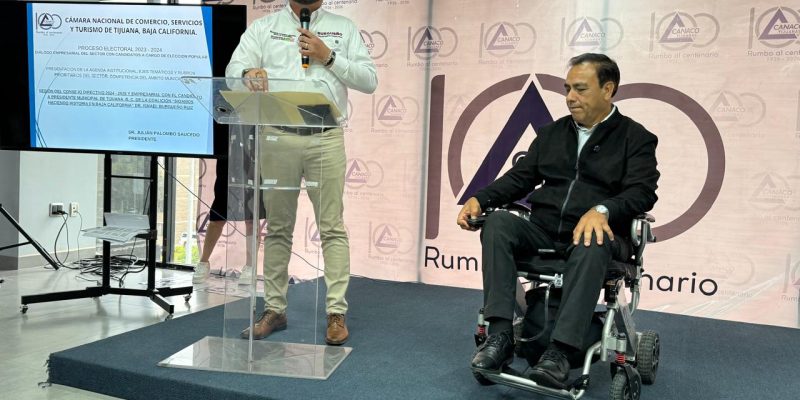 Tijuana, B.C. a 22 de abril de 2024.- “Ni un paso atrás contra la inseguridad, porque vamos por Tiempos Mejores para nuestra ciudad”, sentenció el candidato de la coalición “Sigamos Haciendo Historia en Baja California”, Ismael Burgueño Ruiz durante la presentación del proyecto de una Tijuana Segura con enfoque Humanista ante integrantes de la Cámara Nacional de Comercio (CANACO).