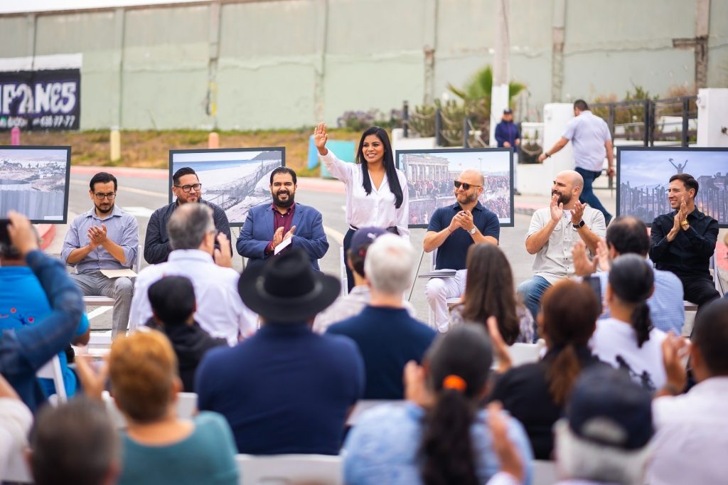 Tijuana, Baja California, a 13 de agosto de 2023. “Somos un gobierno que piensa más en la construcción de puentes que de murallas”, puntualizó la alcaldesa Montserrat Caballero Ramírez durante la develación del Monumento “Un Mundo sin Muros” en la esquina de la Patria, donde se viene a ser libre.