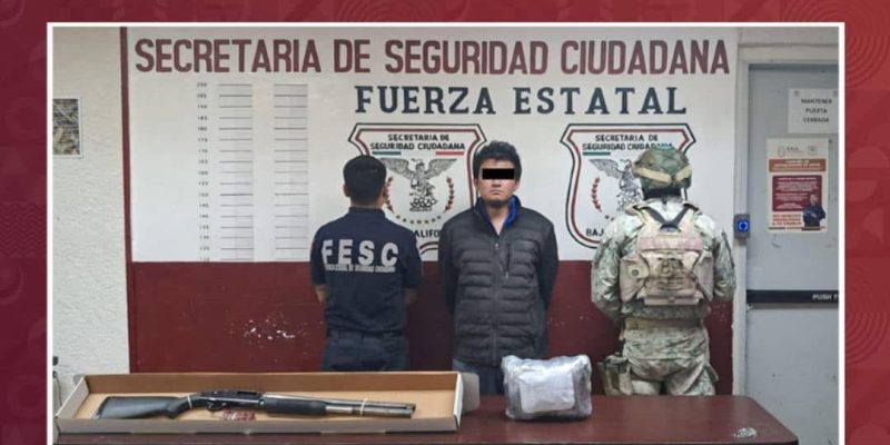 MEXICALI.- Un presunto delincuente dedicado a actividades ilícitas de narcomenudeo, fue sorprendido en flagrancia con un arma de fuego tipo escopeta y más de 360 envoltorios con metanfetamina y marihuana, listos para su comercialización, como parte del operativo #DiciembreSeguro, que fue implementado por agentes de la Fuerza Estatal de Seguridad Ciudadana y elementos de la Secretaría de la Defensa Nacional (SEDENA) en la colonia El Refugio de la capital del Estado.