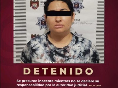 Detiene Policía Municipal en coordinación con UMAS a presunta responsable que privó de la vida a su pareja