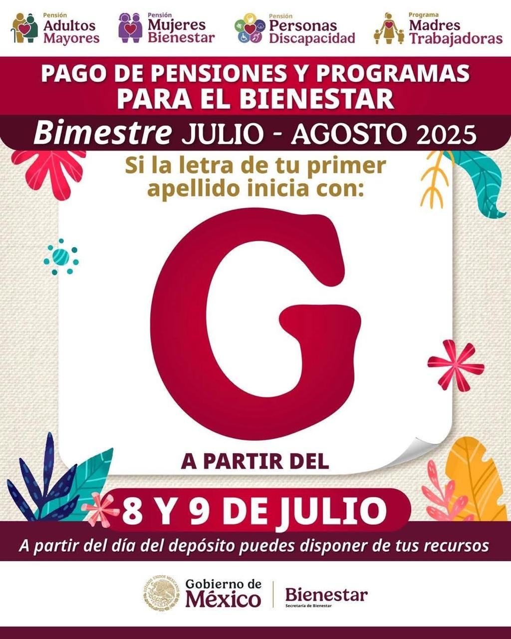 Si tu apellido inicia con la letra G, este 8 y 9 de julio recibirás ...